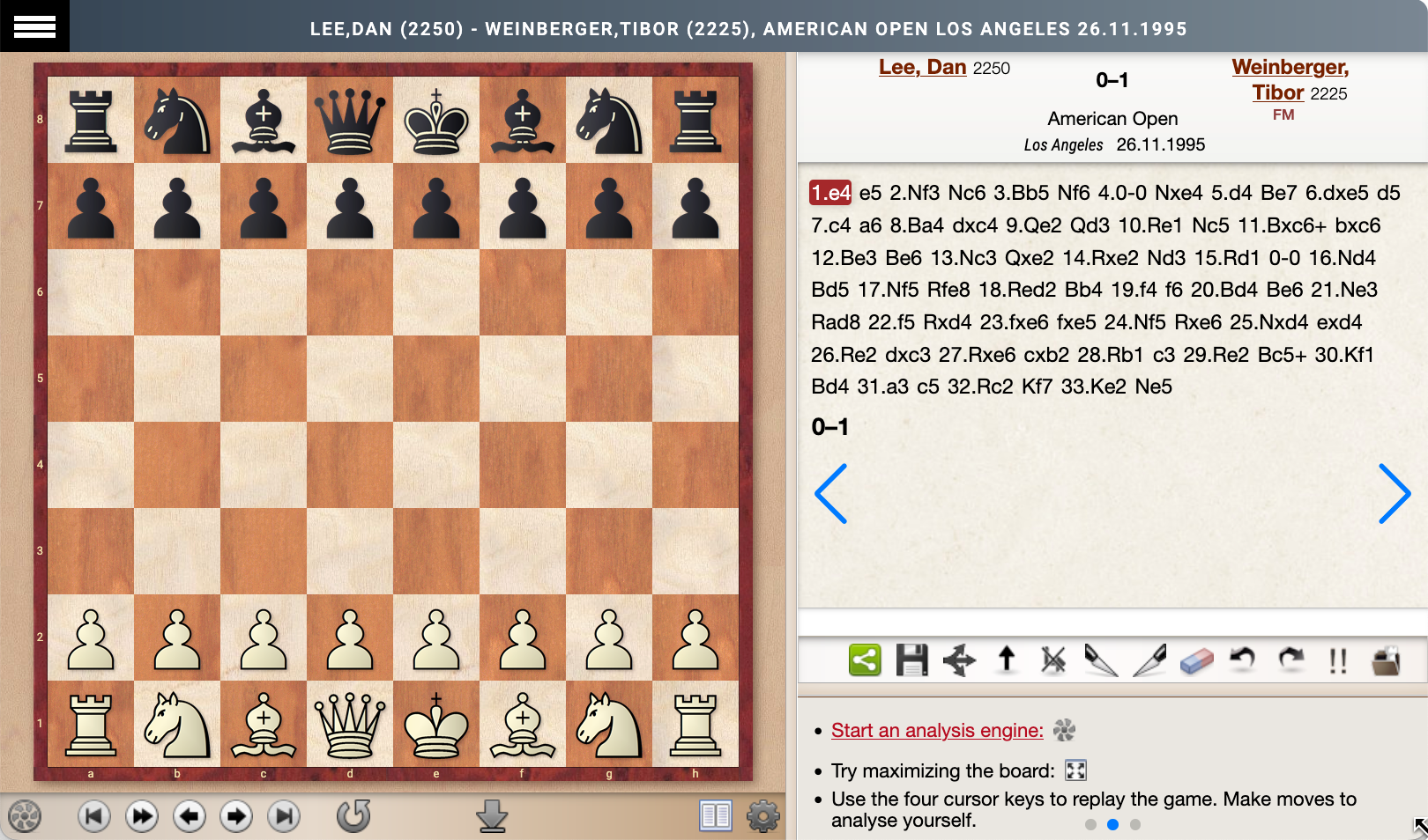 But Mark also excelled in tournament play, peaking at a 2496 rating. Perhaps his greatest result was in the 1987 6th Santa Barbara Grand Prix championship section. His 4-0 score, a point ahead of his rivals, included wins over GM Nick de Firmian, IM Kamran Shirazi, and future IM Doug Root. There were two other GMs, two other IMs, and five FMs in the field.