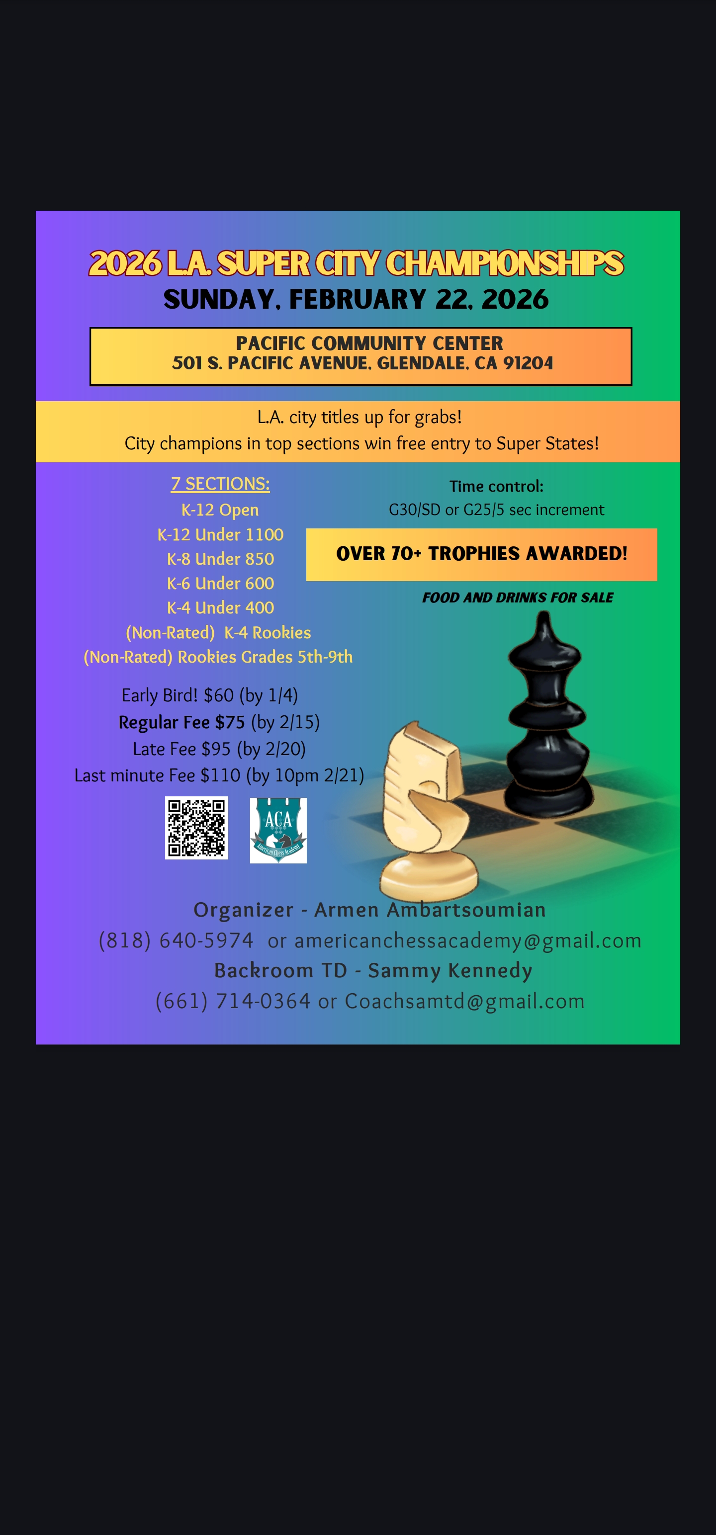 2023 SoCal SuperStates K-3, K-5, K-8, and K-12 Championship Sections. Details and registration here.
